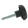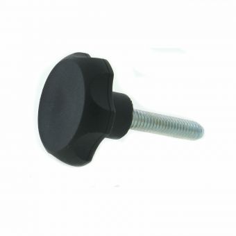 JBF National’s studded thermoplastic 6 lobe knob ensures maximum palm comfort and grip. This hand knob (also known as a clamping knob) features a molded in zinc plated steel stud for added durability and corrosion resistance. Black or Orange thermoplastic color options, and a variety of stud lengths are available. Please see component diagram below.